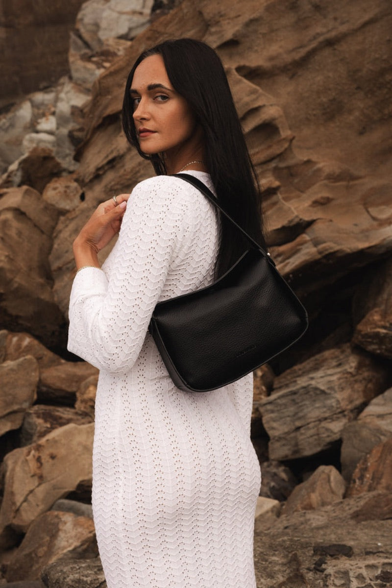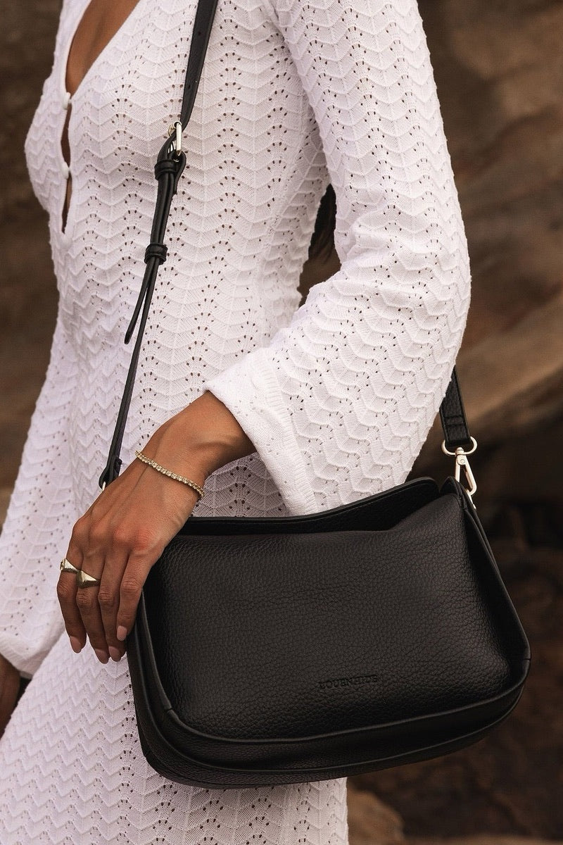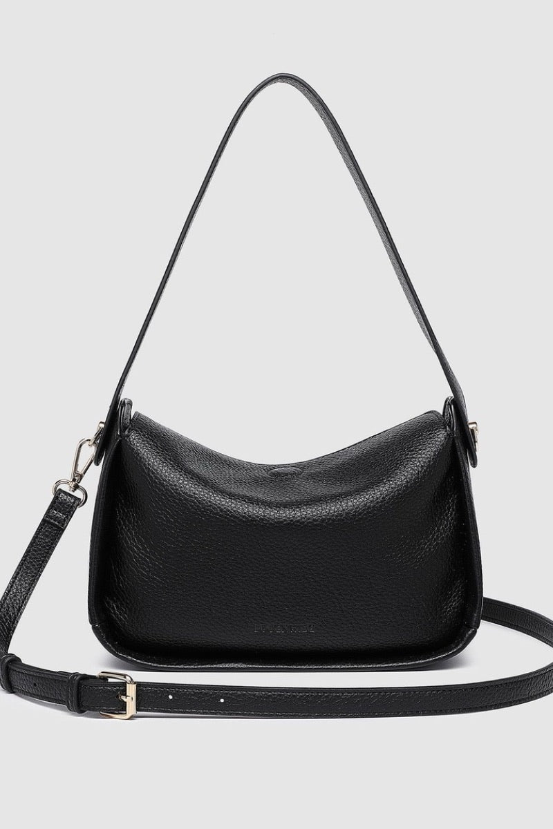 The Louenhide Maddie Black Shoulder Bag is a minimalistic and sophisticated crossbody bag that effortlessly blends style and versatility! This women's small shoulder bag is the ultimate companion, whether you're heading out for a casual lunch or dressing up for a fancy dinner, Maddie Black can switch up your style in a snap! Wear her as a classic crossbody for hands-free convenience or convert her into a soft evening bag by simply swapping to the shoulder strap. This women’s convertible crossbody bag is compact yet spacious enough to hold all your essentials. From your phone to your lipstick, everything stays organised and within reach. Simple won’t mean boring when the Maddie Black is by your side! With her sleek design and timeless silhouette, this everyday shoulder bag is a stylish addition to any wardrobe. She’s the perfect mix of practicality and flair.