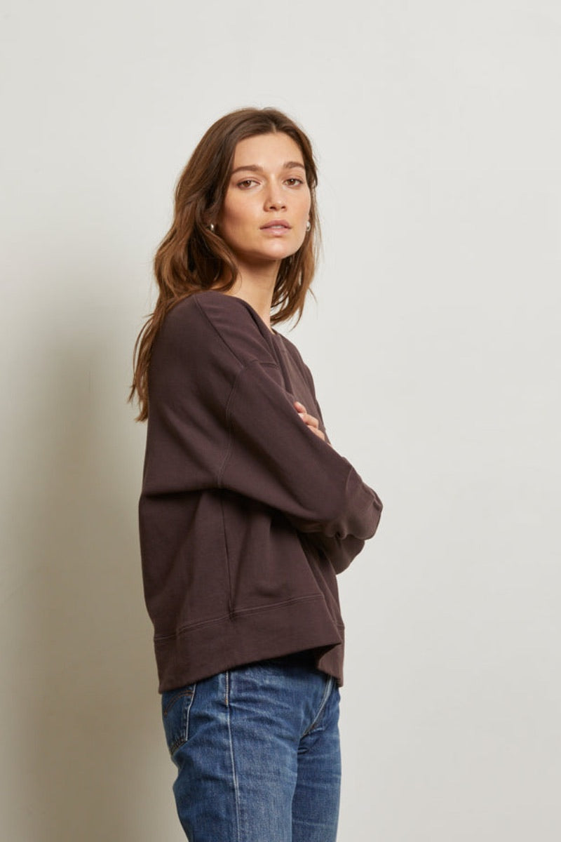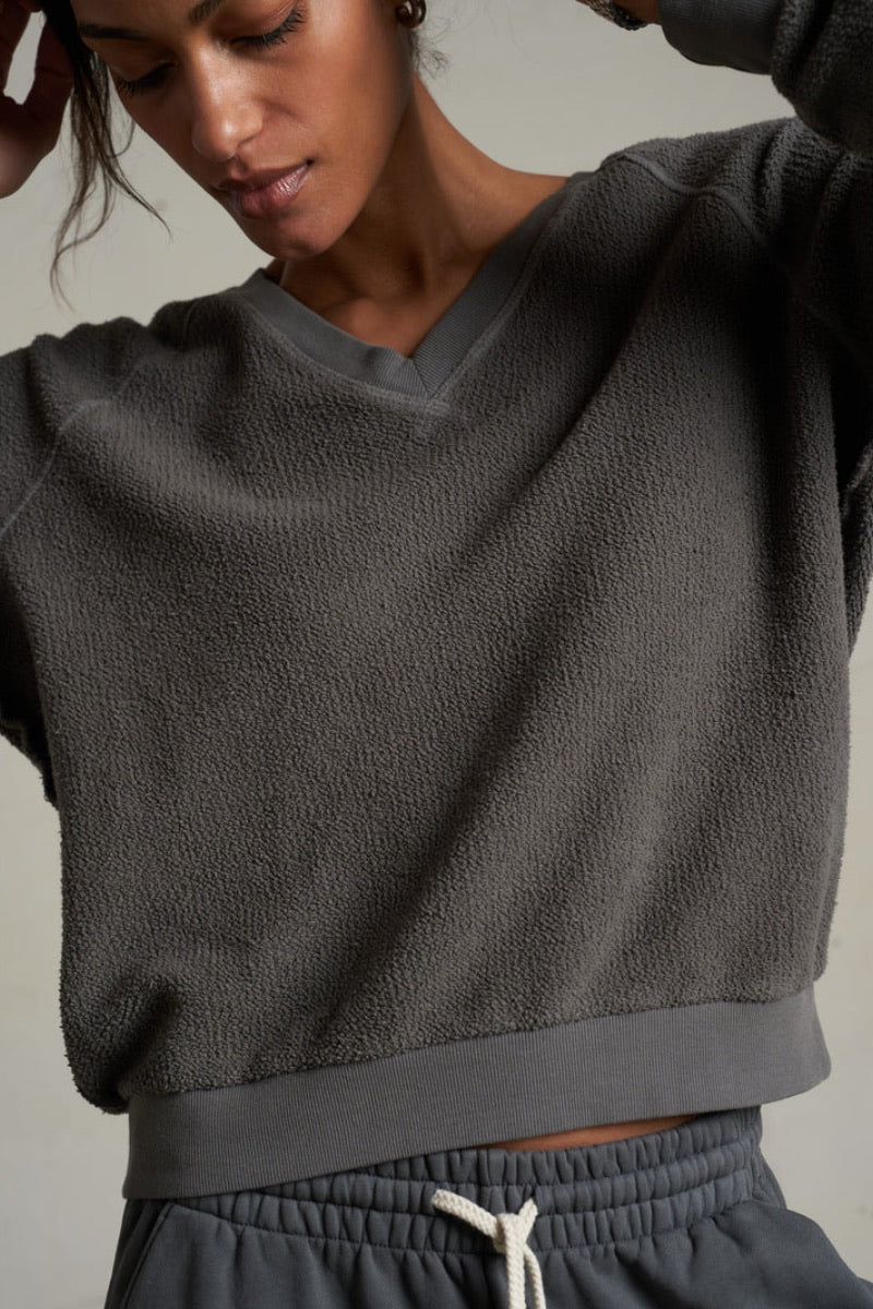 Perfect White Tee - Zuri Reverse Fleece V Neck Sweatshirt in Charcoal
