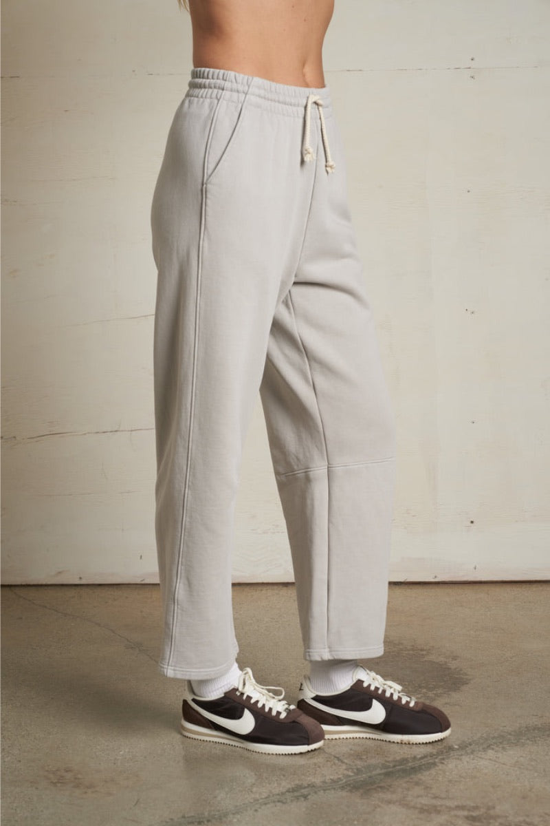 the fallon pant is made from heavy fleece and designed to be the sweatpant that has it all. with side pockets, a pull-on waist with natural drawcord tie, and a barrel leg that tapers into a straight, slightly cropped finish, this bottom is equal parts practical and flattering.