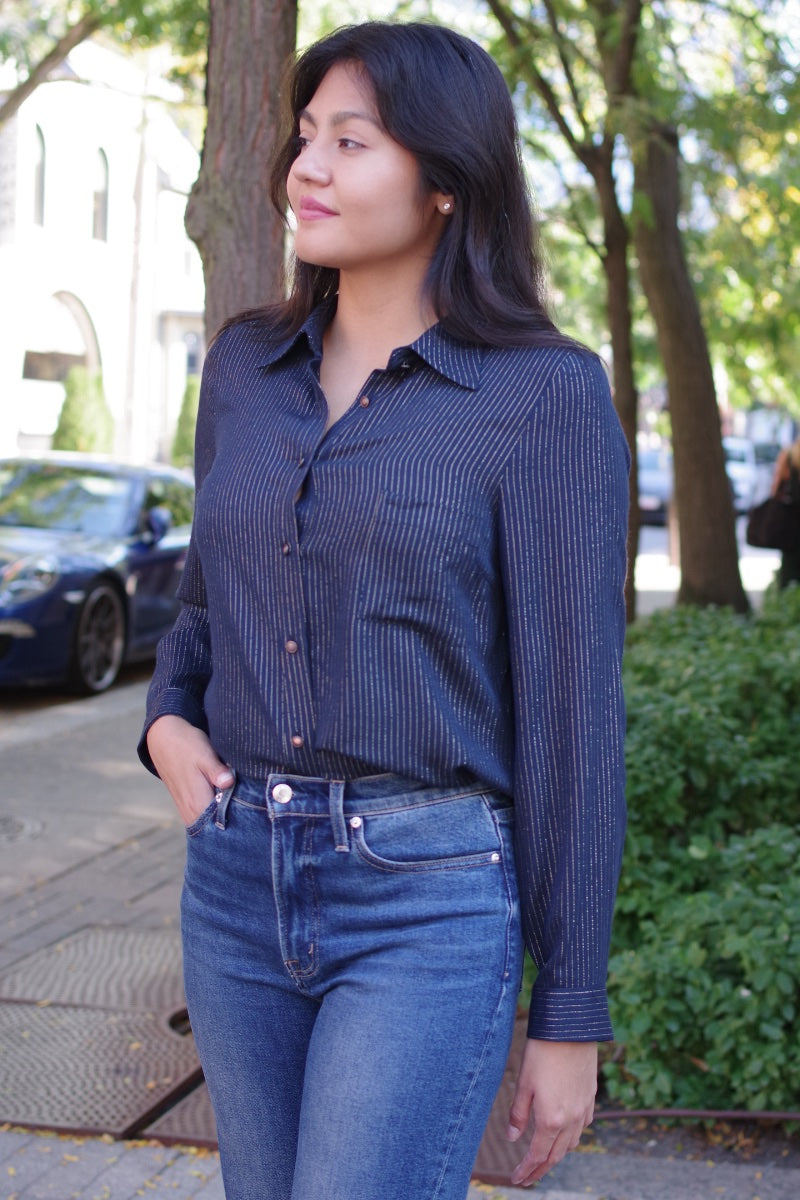 La Petite Francaise - Francaise Blouse in Lurex Navy