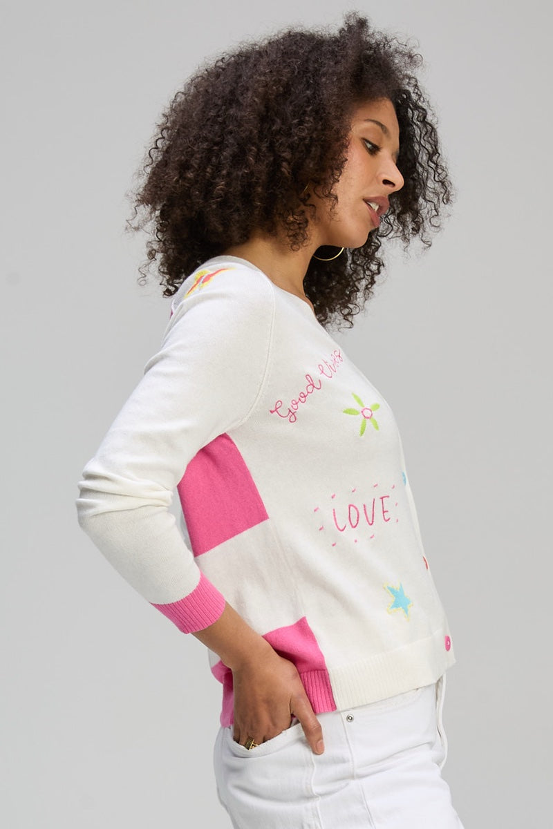 Zaket & Plover - Good Vibes Only Cardi in White