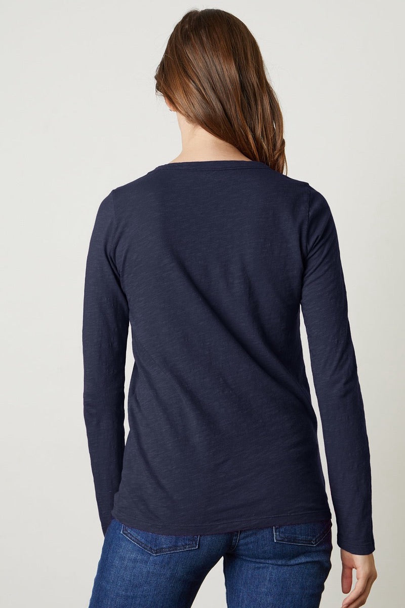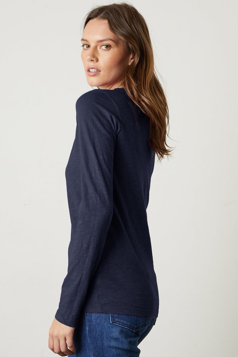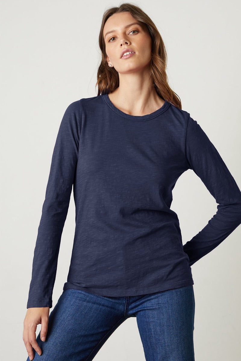 Crafted from textured cotton slub, this tee features long sleeves and a classic crew neckline. Perfect for layering or wearing on its own, it is designed to offer exceptional softness and effortless wear throughout the year.