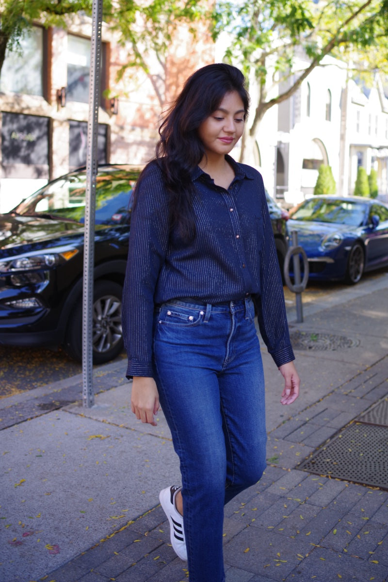 La Petite Francaise - Francaise Blouse in Lurex Navy
