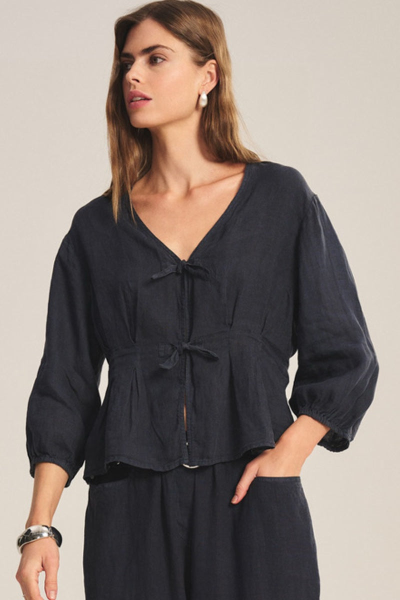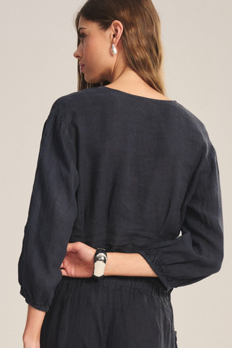 • 100% LINEN • MACHINE WASH • MADE IN USA Model is 5’9” wearing size small