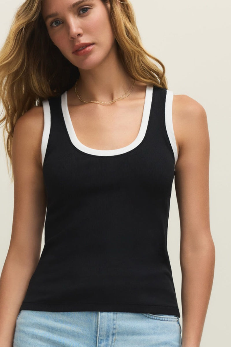 Z Supply - Sirena Colour blocked Rib Tank in Black