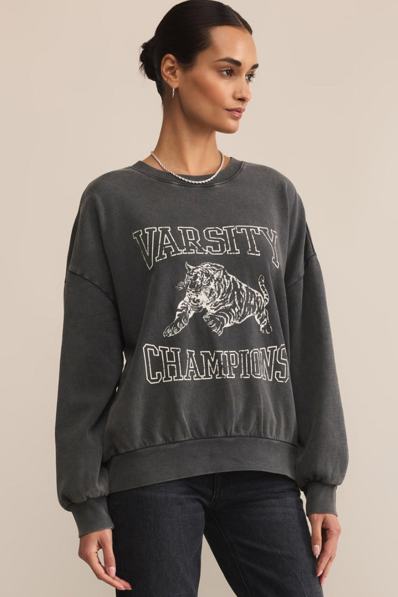 Z Supply - Varsity Sunday Sweatshirt in Black Sand