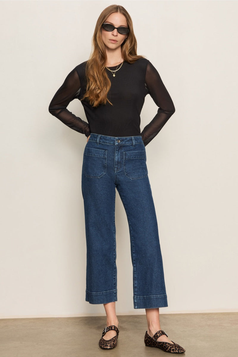 Pantalon court en jean taille standard à associer à de jolis mocassins ou à des bottes longues. Coupe ultra-serrée, parfaite avec un joli t-shirt ajusté ou un pull ample.