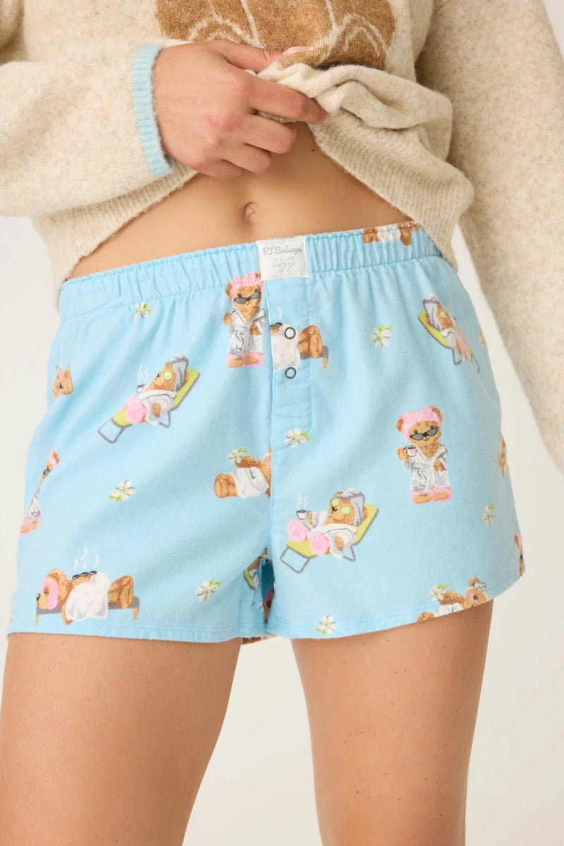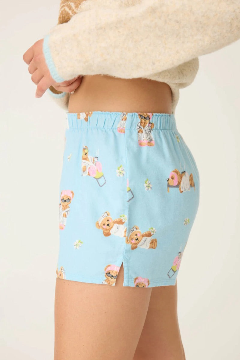 • Short de nuit en flanelle pour femme bleu glacier avec imprimé ours en peluche pour une journée au spa