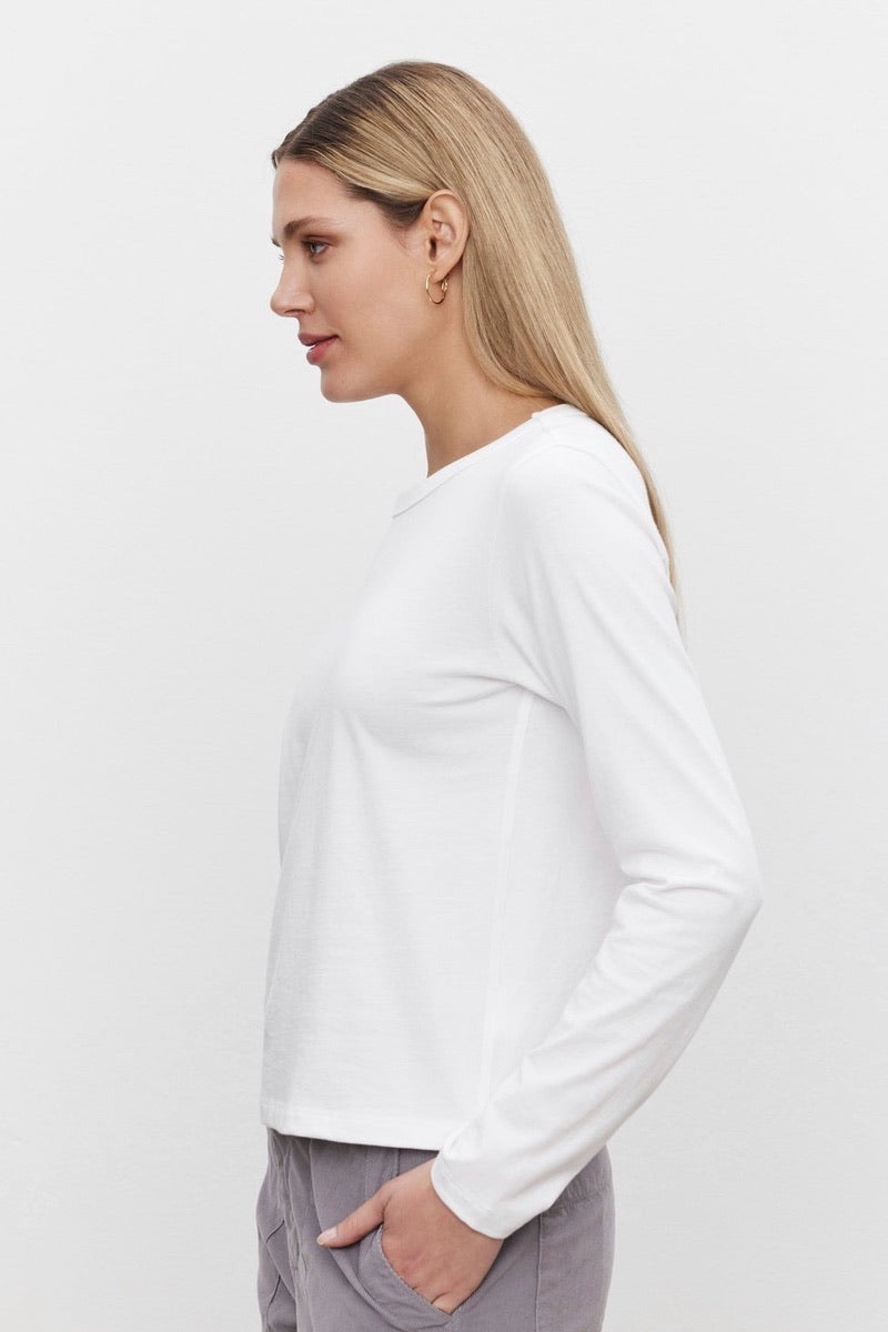 Velvet - Vicky Long Sleeve Jersey Top in White