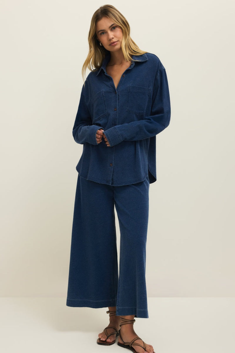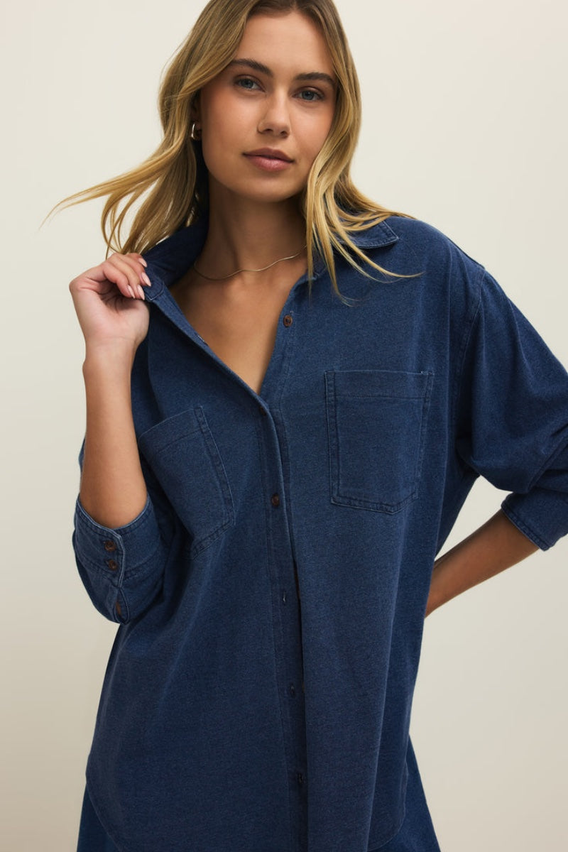 Z Supply - Reese Jersey Denim Button Up in Indigo