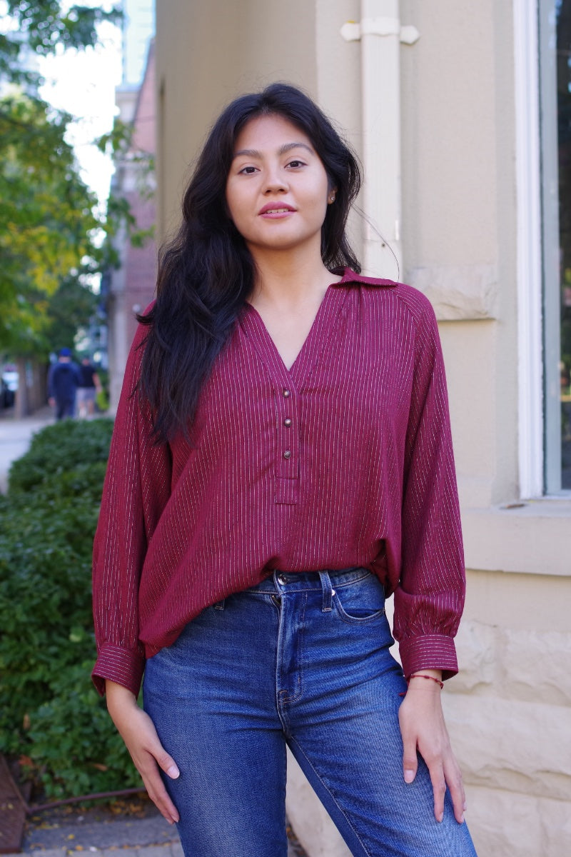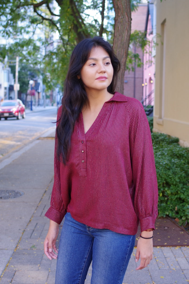 La Petite Française - Blouse Française en Lurex Bordeaux