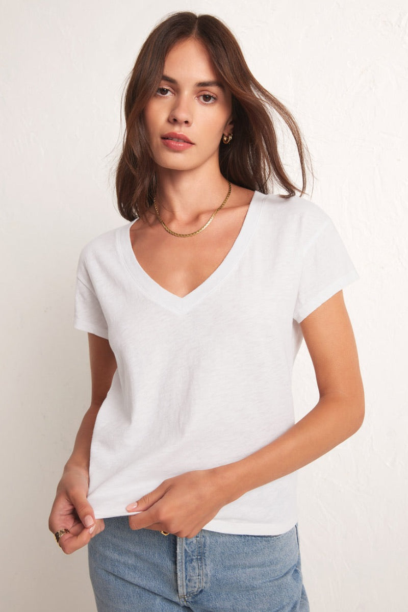 Fabriqué à partir de notre tissu jersey léger qui a cette sensation usée que vous aimez, ce t-shirt facile à porter se place juste en dessous de la taille pour être porté rentré ou sorti.