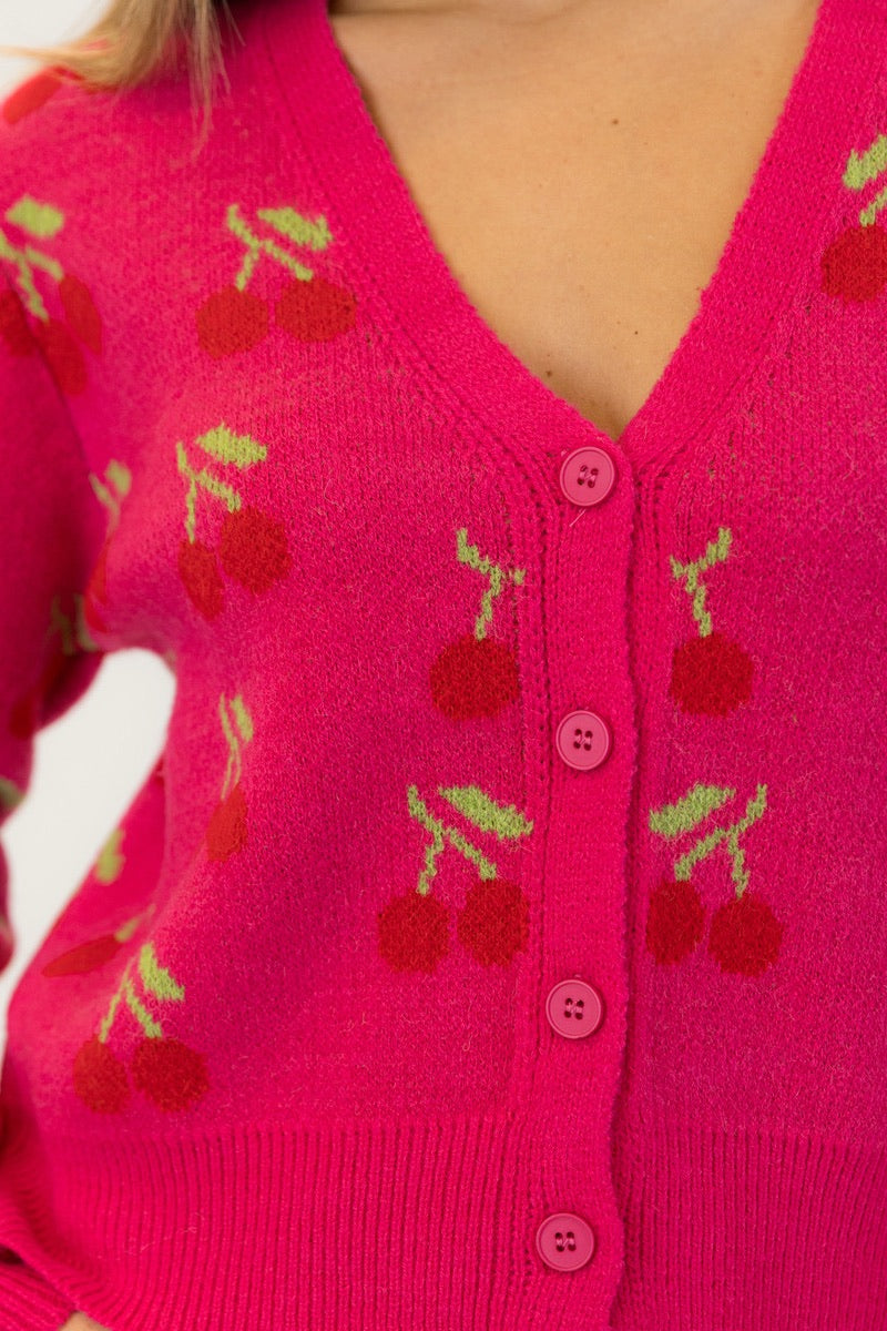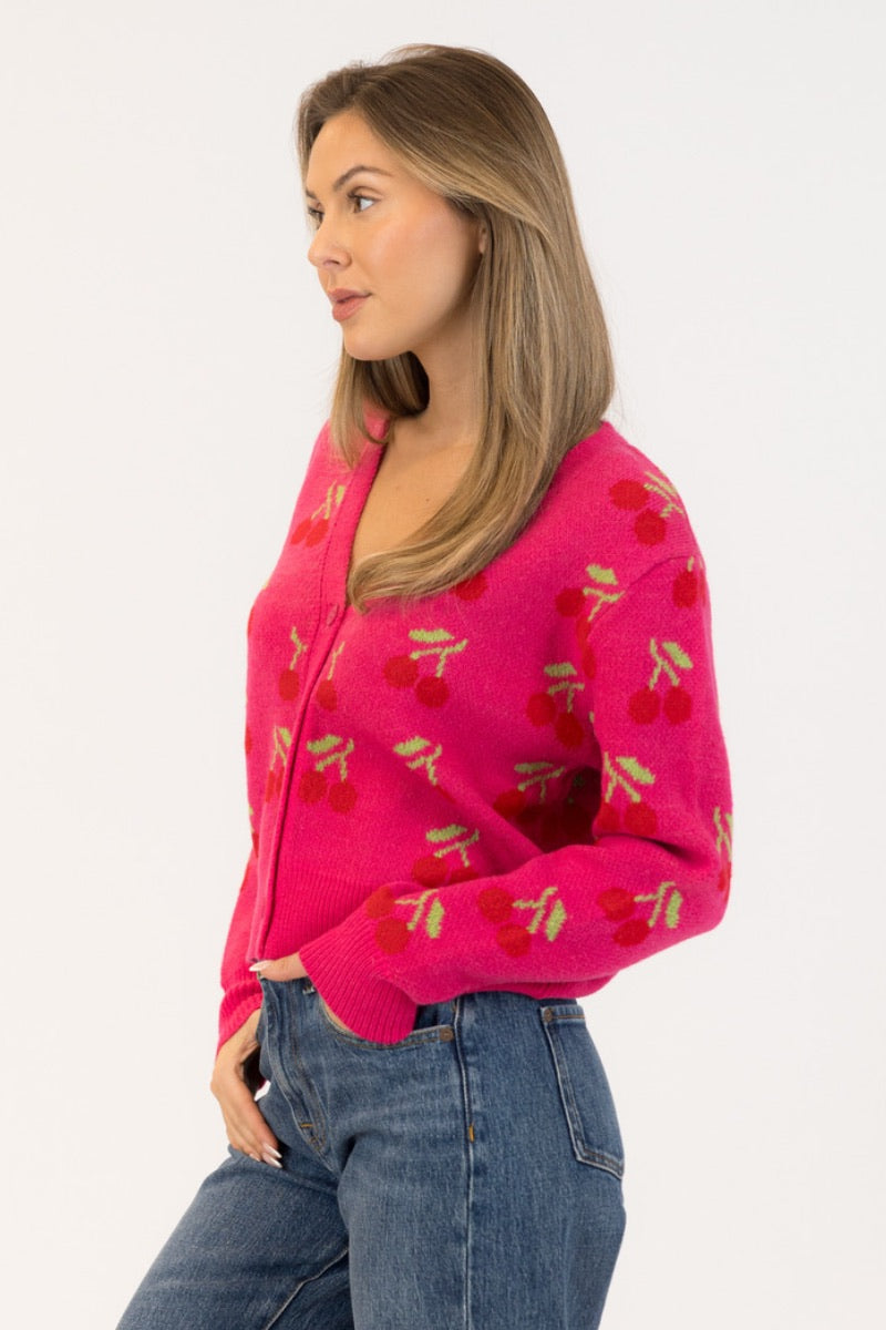 Lyla & Luxe - Kailie Cardigan in Pink/Red Cherries