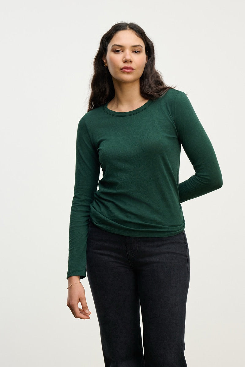Crafted from textured cotton slub, this tee features long sleeves and a classic crew neckline. Perfect for layering or wearing on its own, it is designed to offer exceptional softness and effortless wear throughout the year.